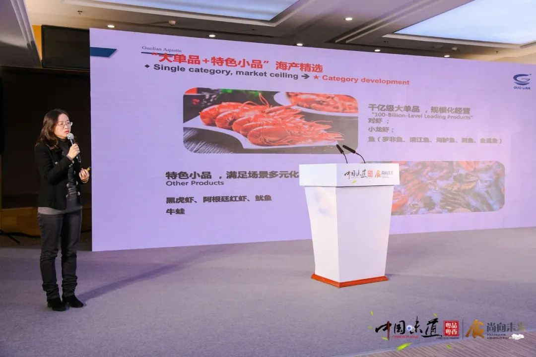 国联水产集团副总裁赵红梅向现场与会人员详细介绍了风味烤鱼、塔可饼、小龙虾意面等国联水产特色预制菜品,分享了国联水产在预制菜标准制定、联农带农、产品研发、生产自动化、品牌推广打造等方面的成功经验。并围绕国联央厨、国联预制菜发展成果与规划,阐述了预制菜如何重构农产品价值链新模式;公司如何以预制菜为切入口打造“乡村振兴,共同富裕”的样板,引领预制菜产业发展新模式。